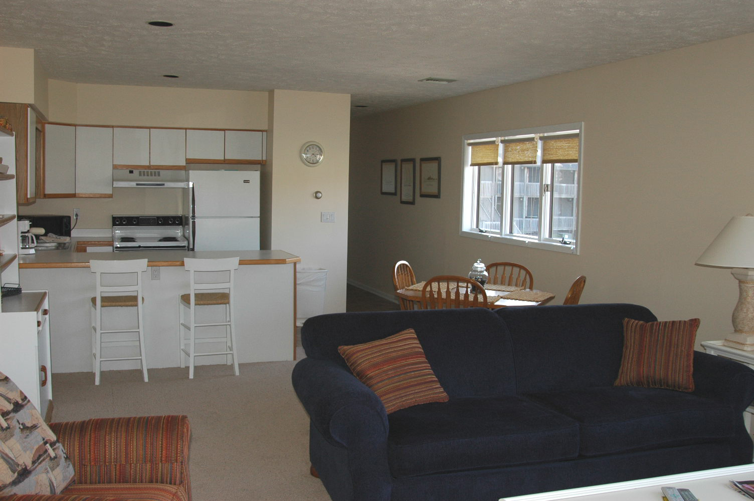 This unit is located on the ground floor next to the front desk check-in area. While this unit offers no views, it is just steps away from the pool and only a short walk to the beach.